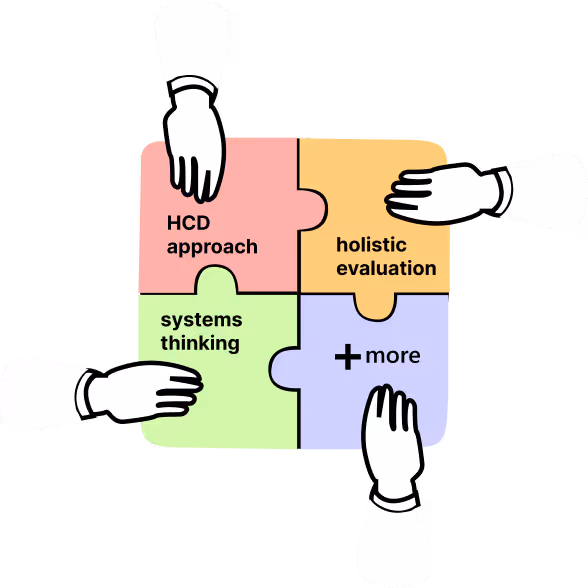 We adapt our methods, depth, and engagement to align with the project context and your goals. Because context and constraints are never static, our agile, iterative approach draws from a rich toolkit of recognised approaches—human-centered design, systems thinking, holistic impact measurement, and sector-specific or intra-organizational processes—applying each with flexibility to ensure the outcome stays responsive and relevant.